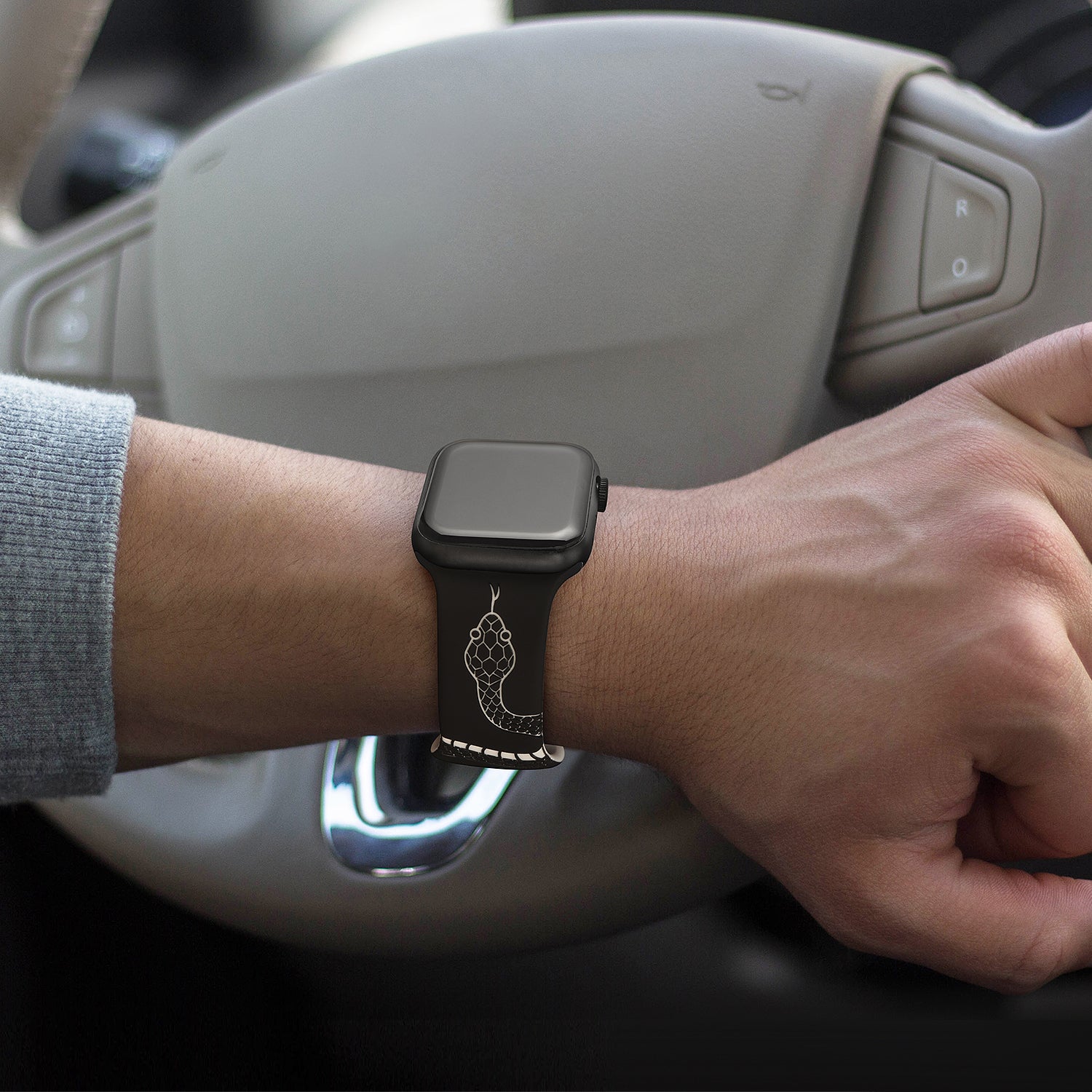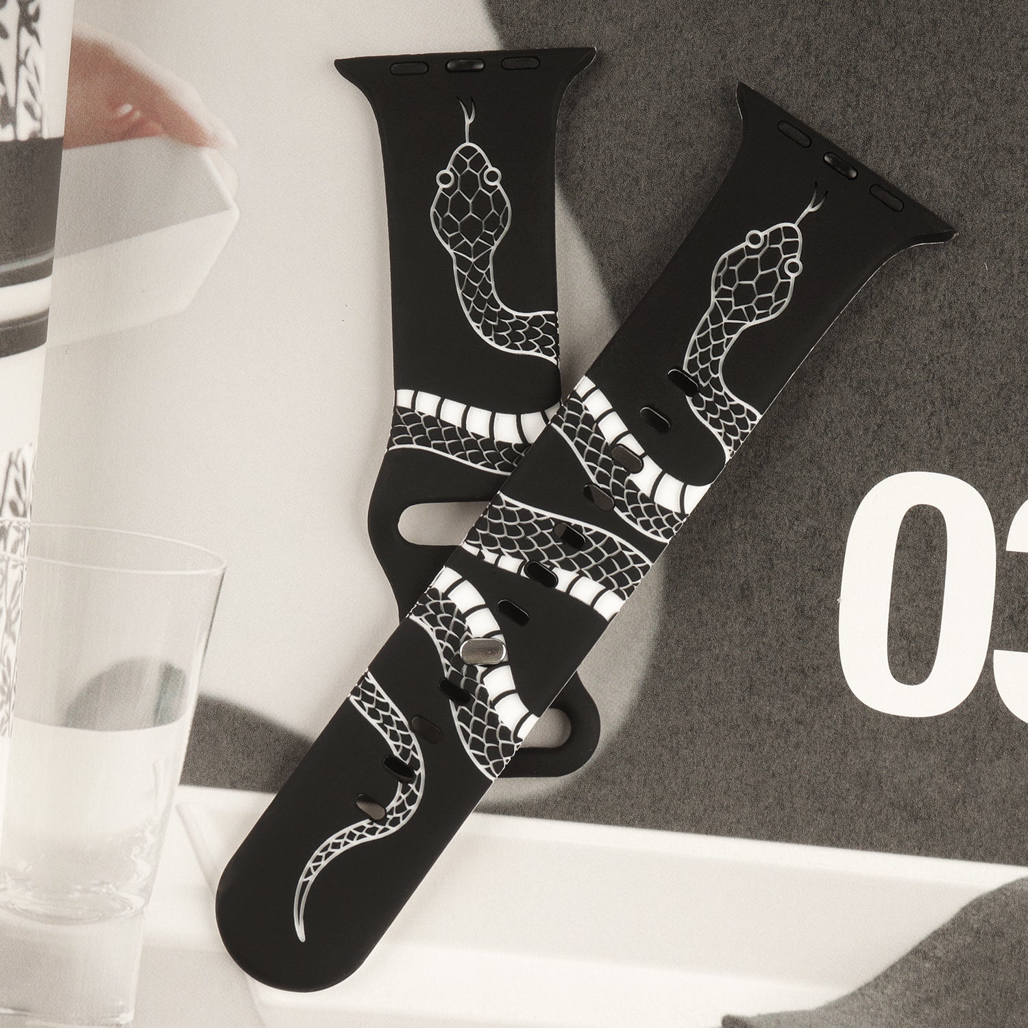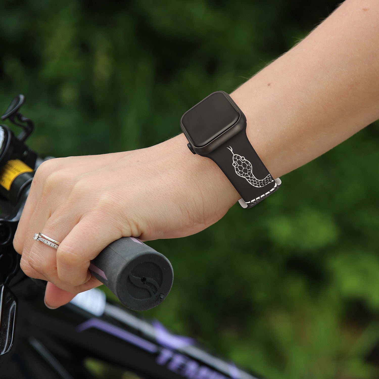 - Premium Soft Silicone Comfortable to Wear - This snake engraved iwatch band made of high-grade soft silicone, offers a luxurious feel and exceptional durability, breathable, durable, flexible, easy to clean and waterproof. Ultimate comfort to wear while can withstands daily wear and tear, perfect choice for sports and fitness activities.