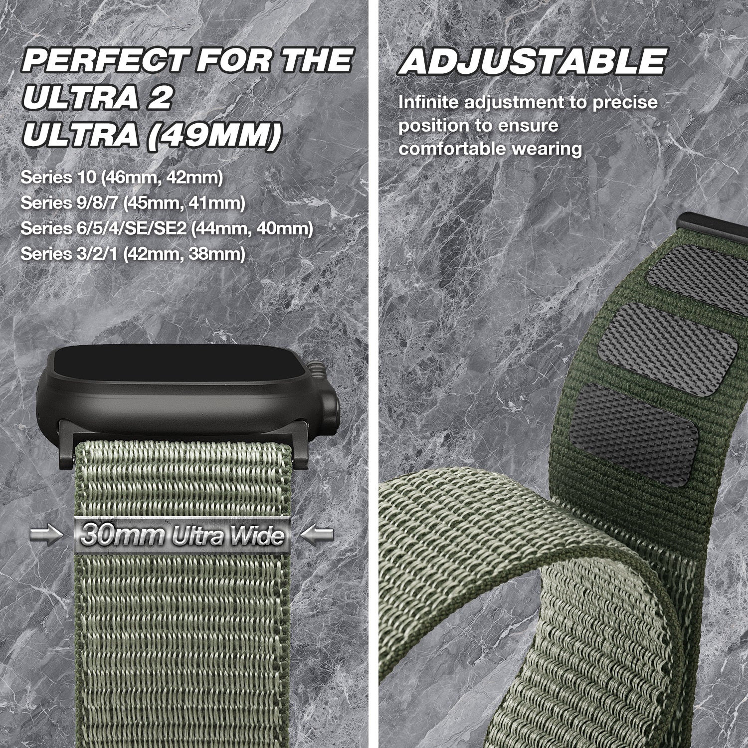 ZRDESIGN Ultra Wide Nylon Watch Band Compatible with Apple Watch 42mm 44mm 45mm 49mm, Adjustable Sport Loop For iWatch Series 8 7 6 5 4 3 2 1 SE--Olive